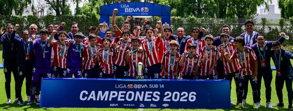 Toluca, Méx.- Chivas reafirmó su fortaleza en fuerzas básicas al proclamarse campeón del Torneo Sub-14 de la Liga BBVA MX, luego de vencer con claridad 3-0 a Pachuca en la Gran Final disputada en las instalaciones de la Federación Mexicana de Futbol.