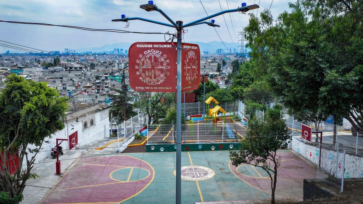 Naucalpan, Méx.- Ante habitantes de Loma Colorada, el alcalde, Isaac Montoya Márquez, entregó la 70 “Huella de la Transformación”, al recuperar las canchas deportivas y el parque de Avenida de Las Torres, en la colonia Loma Colorada, Primera Sección, además de que se creó un Sendero Seguro más.