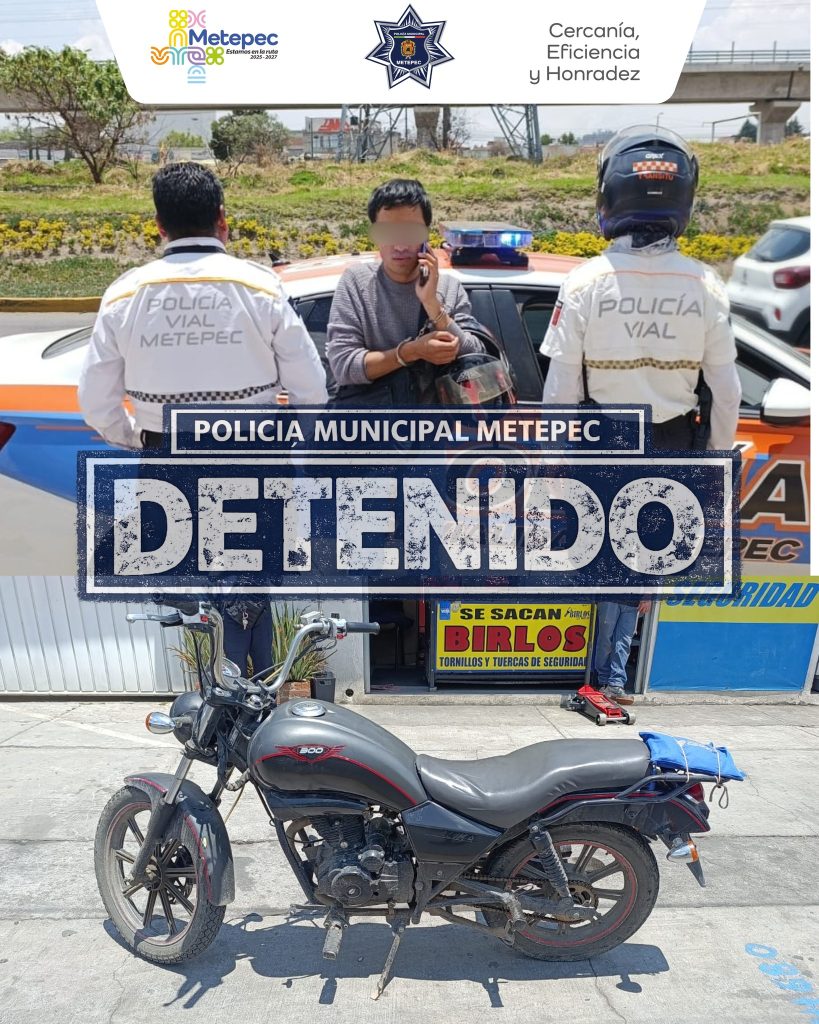 Metepec, Méx.- Con el objetivo de fortalecer la seguridad de peatones y reducir la incidencia delictiva vinculada al uso de motocicletas, el Ayuntamiento de Metepec mantiene en operación el dispositivo denominado “motorratón”, un operativo itinerante que se despliega en distintos puntos del municipio para la revisión de unidades y la detección de posibles conductas ilícitas.