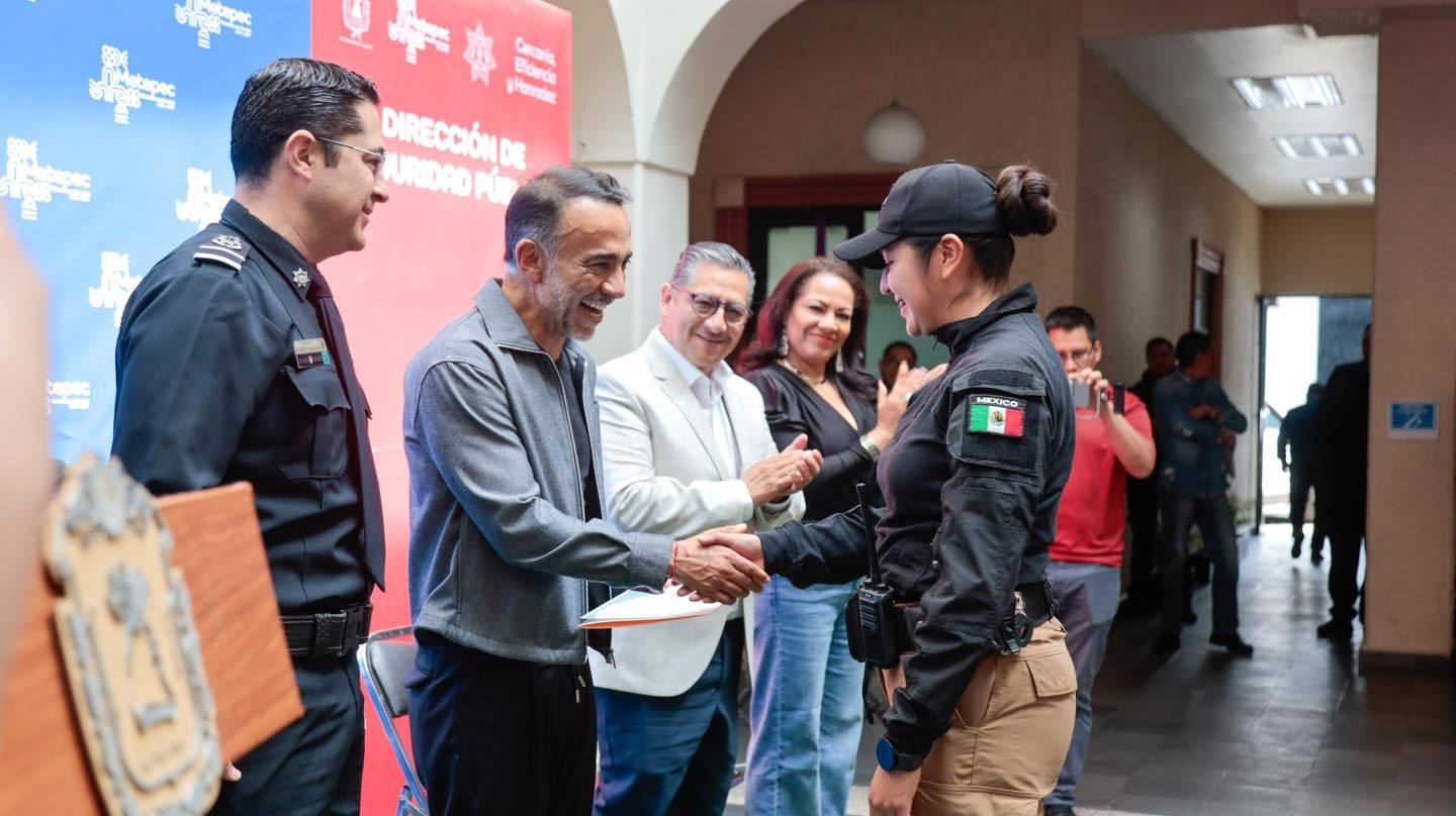 En compañía del comisario de Seguridad, Jesús Alberto Ramírez Manzur, el munícipe señaló que estas acciones forman parte de una estrategia integral para consolidar una policía más capacitada, comprometida y cercana a la ciudadanía. “Hoy con enorme entusiasmo entregué a nuestra Policía Municipal constancias de grado y la ratificación de su aumento salarial del 39 por ciento en lo que va de mi administración; reconociendo su esfuerzo, compromiso y el trabajo que realizan todos los días por Metepec. Porque quienes cuidan a nuestras familias también merecen mejores condiciones y todo nuestro respaldo; así seguimos fortaleciendo a nuestra policía y haciendo un Metepec más seguro”, expresó.