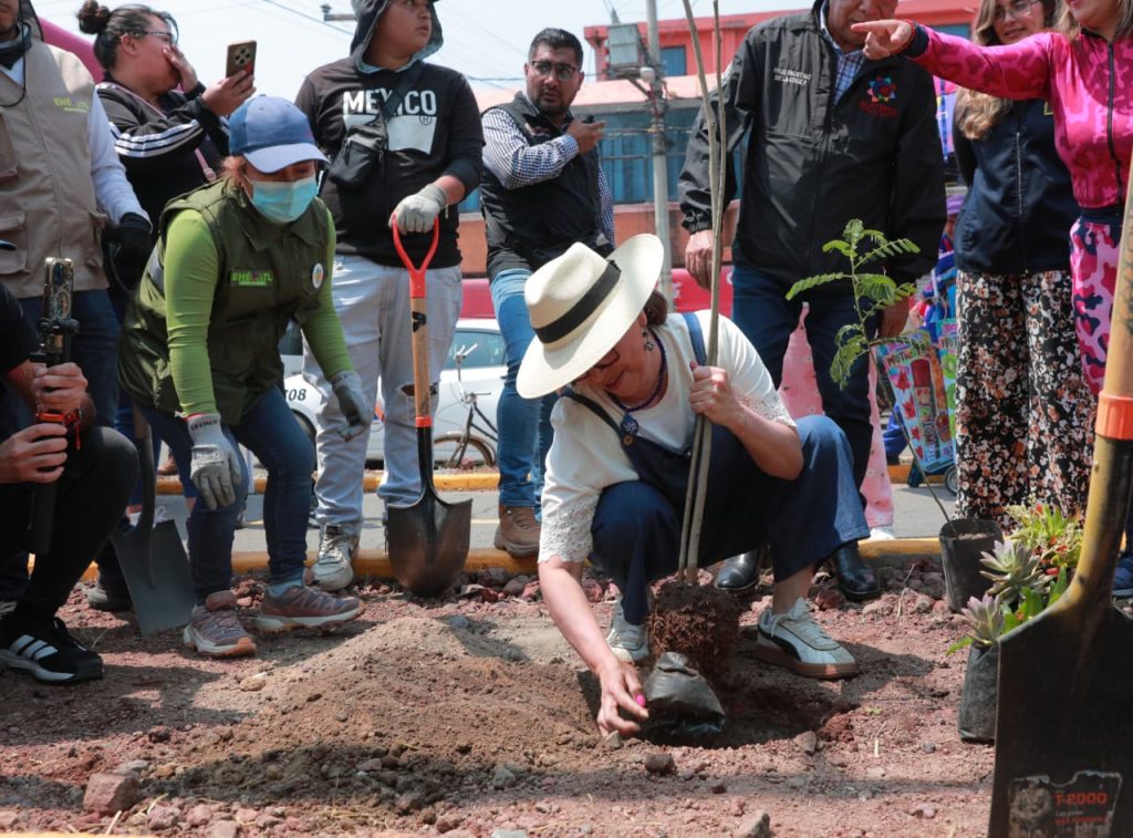 En el camellón pintaban el mensaje “Ecatepec Pambolero”, al tiempo que trabajadores cultivaban diferentes especies de árboles y plantas, tales como jacarandas y suculentas, entre otras especies traídas del vivero municipal. “Lo hacemos en esta temporada porque ya van a empezar las lluvias”, detalló la munícipe.