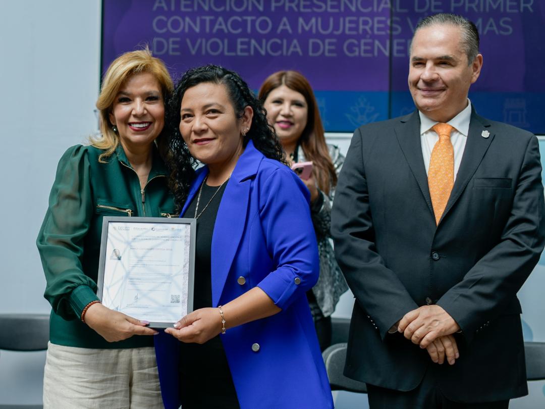 La titular de la Dirección de las Mujeres, Leticia Baca Vázquez, comentó que esta certificación permite que las y los servidores públicos actúen con empatía, sensibilidad y responsabilidad, al contar con herramientas técnicas para brindar una atención digna, sin revictimización, además de identificar de manera efectiva el nivel de riesgo.