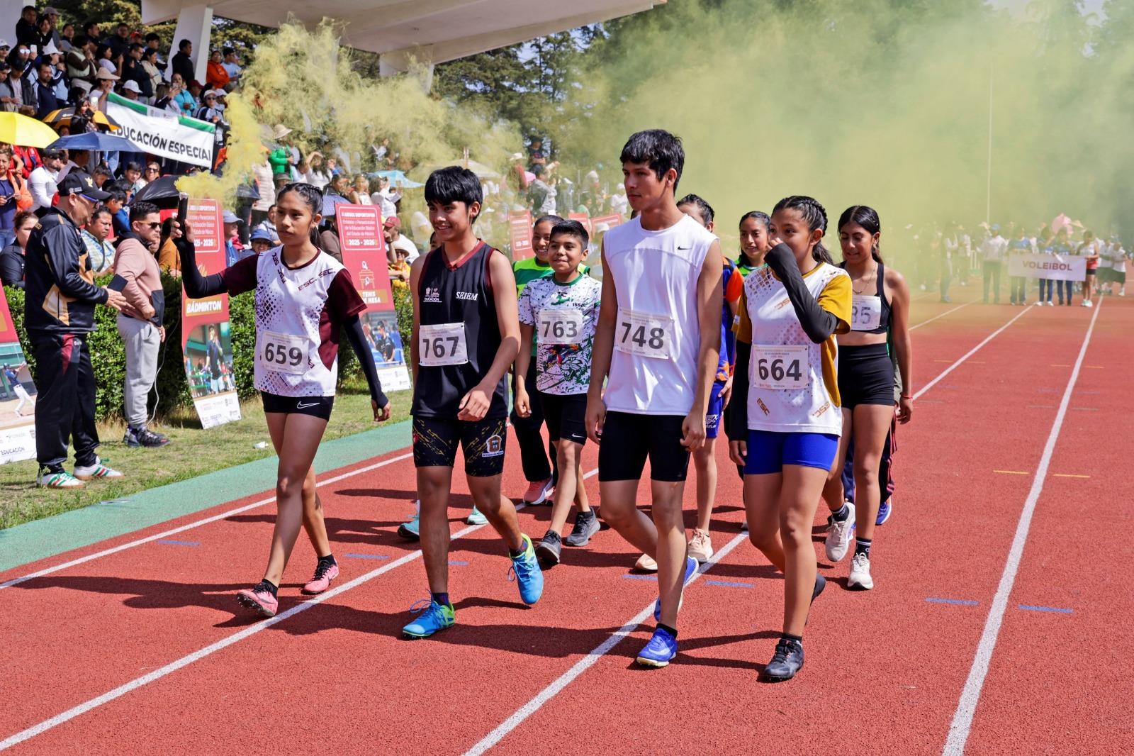 Toluca, Méx.– Más de 5 mil estudiantes de educación básica participan en la fase estatal de los Juegos Deportivos Estatales y Paraestatales 2025-2026, que se realizan en la Ciudad Deportiva “Lic. Juan Fernández Albarrán”, en Zinacantepec, como parte de la política educativa de la Gobernadora Delfina Gómez Álvarez que prioriza la formación integral, la inclusión y el desarrollo de habilidades motrices a través del deporte.