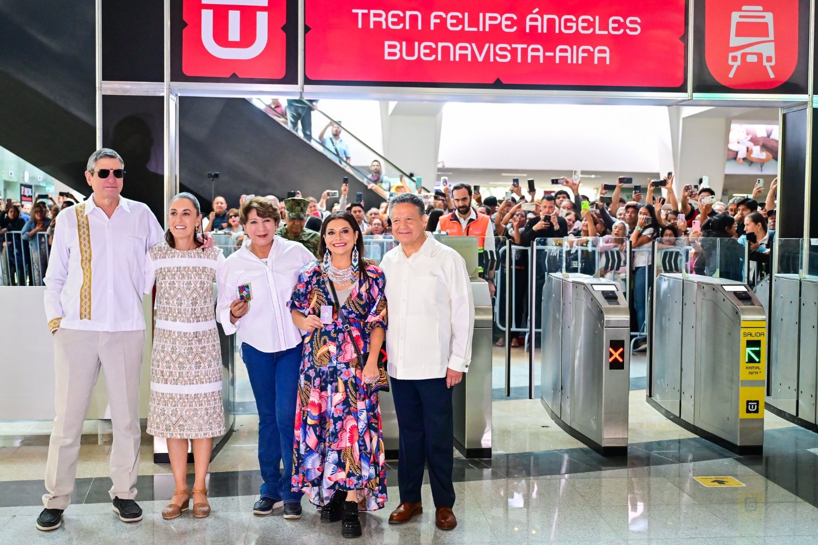Zumpango, Méx. — Con la promesa de transformar la movilidad en el Valle de México, la gobernadora del Estado de México, Delfina Gómez Álvarez, acompañó a la presidenta Claudia Sheinbaum Pardo en la inauguración del tren “Felipe Ángeles” en el tramo AIFA-Lechería, una obra ferroviaria de 41 kilómetros que conecta la estación Buenavista, en la Ciudad de México, con el Aeropuerto Internacional Felipe Ángeles (AIFA).