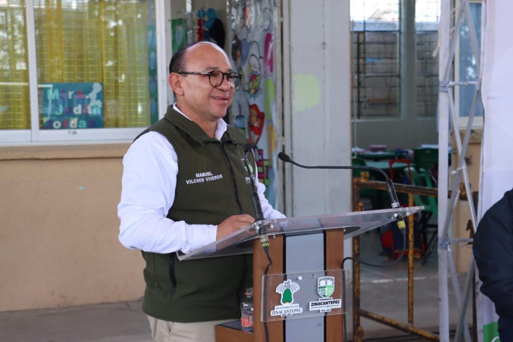 En su mensaje, el alcalde Vilchis Viveros expresó que, aunque la educación es una responsabilidad estatal, en Zinacantepec no se espera, se actúa: “Somos 125 municipios y no siempre se puede atender todo al mismo tiempo, pero aquí decidimos invertir recursos propios porque la educación de nuestras niñas y niños no puede esperar”.