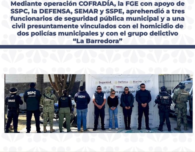 Desde Puebla Mediante operación COFRADÍA, la FGE, con apoyo de SSPC, la DEFENSA, SEMAR y SSP [...]