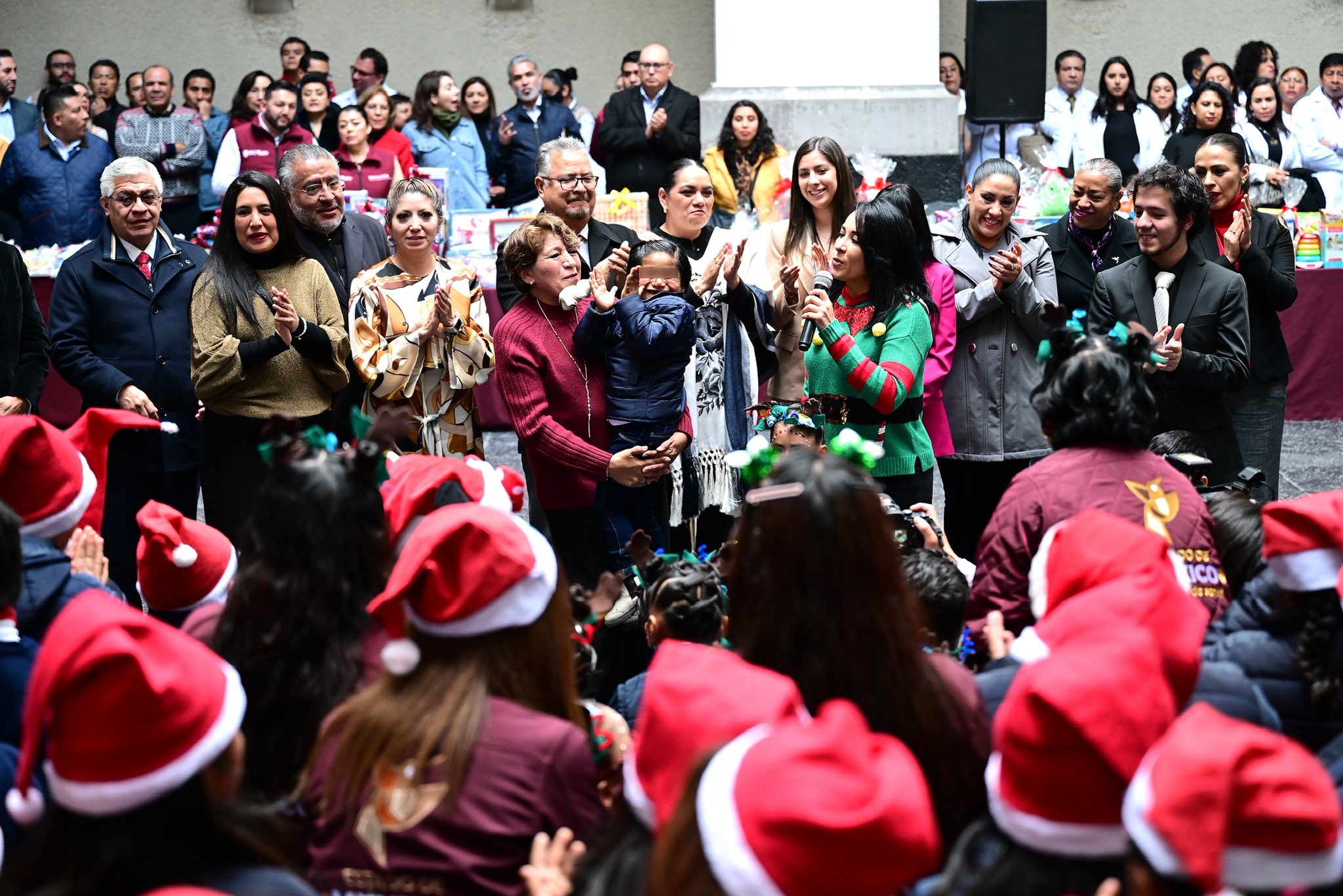 Delfina Gómez entrega juguetes y aguinaldos a menores del DIFEM